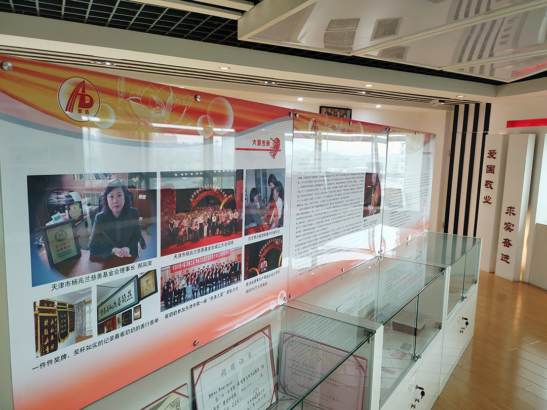 随后在五楼文化展厅,崔董事长把重点聚焦到慈善老人崔奶奶身上,作为崔洪金和崔洪英两位董事长的母亲,崔奶奶乐善好施,大爱无疆的美德完全传承到了两位董事长身上,并得到了更大发扬。崔洪金董事长常说:父母之恩,厚如高山,深似大海,父母给了我们生存的权利和拥有的一切。他曾是一名军人,深受母亲的影响和教诲,能将星空(中国)集团做到今天,并成立了以母亲命名的“天津市杨兆兰慈善基金会”。通过杨兆兰慈善基金会继续将母亲的善举大爱延续传承,持续帮助到更多困难家庭,残疾人士,进一步推动天津市慈善事业发展。同样圣发集团崔洪英董事长也是为了完成母亲的遗愿,建立了天津杨兆兰养老院,为敬老爱老的路上一直传承这份大爱。